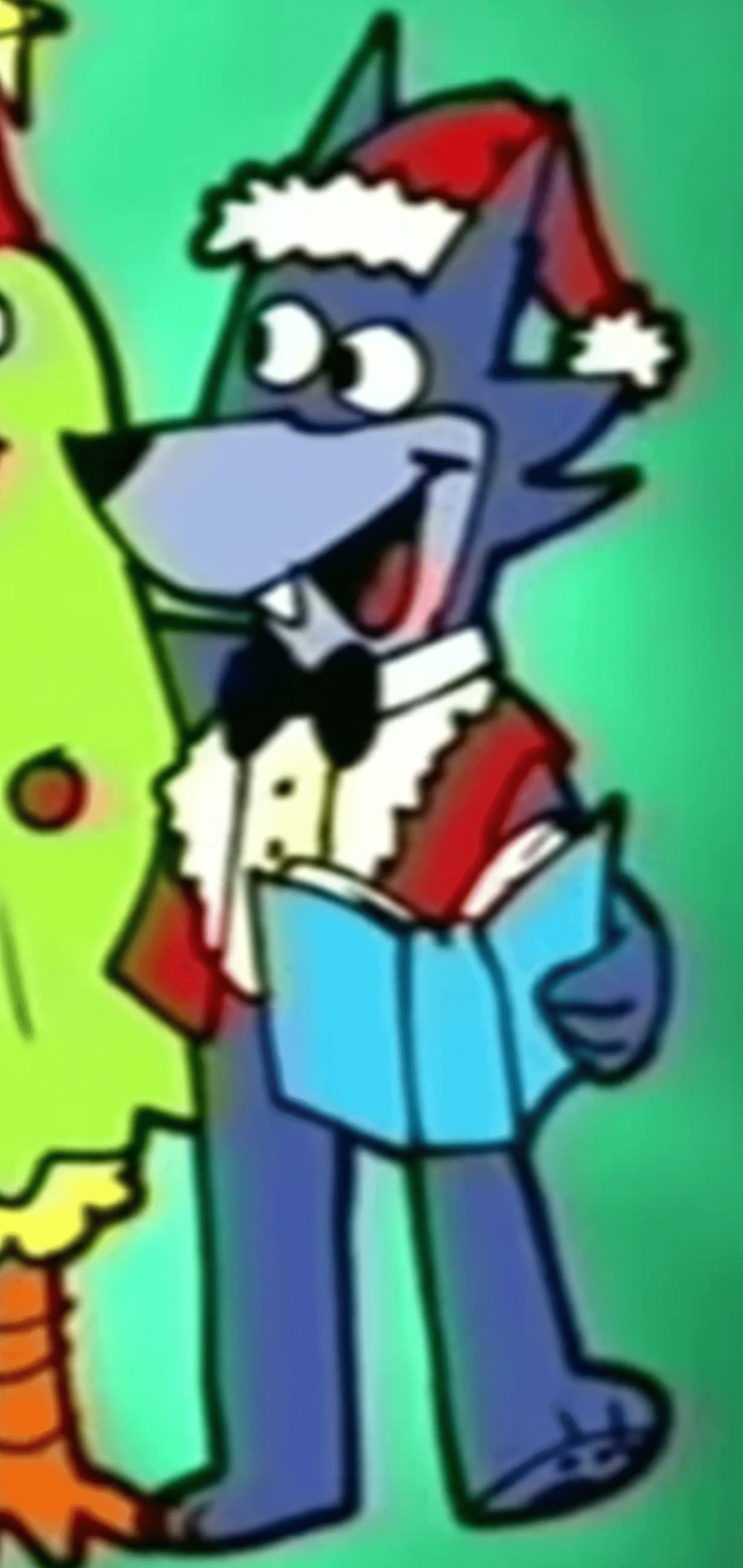 Tammy is an indigo/purple cat with yellowish-green eyes, a yellow bowtie, and a yellow bowler hat. She wears a yellow and black vest and a white shirt with buttons underneath. She is sometimes depicted with a bloody knife headband prop going through her head. Despite being a cat, she has a more canine-like head and snout, which is the reason she is often mistaken to be another animal like a wolf or fox. She also shown in a Christmas outfit with a Santa hat, black bowtie, and red vest.